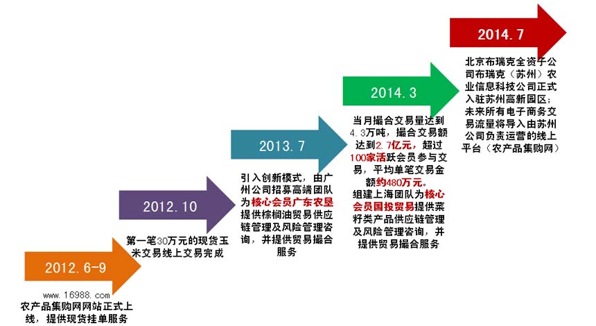 布瑞克公司电子商务版块主要以农产品集购网(www.16988.com)大宗农产品电子商务、第四方物流及供应链管理以及特色农产品电子商务--国际食品安全协会(GFSF)放心店为主要服务平台。业务运营主体分别为母公司旗下的布瑞克(苏州)农业信息科技公司和布瑞克食品安全科技(北京)公司。